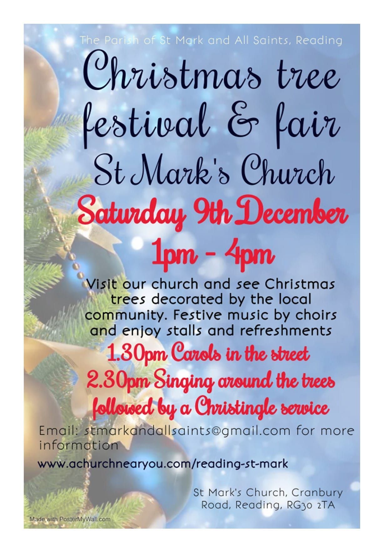 Confirmed to be held at St Mark's Church Hall, Cranbury Road, Reading, RG30 2TA.