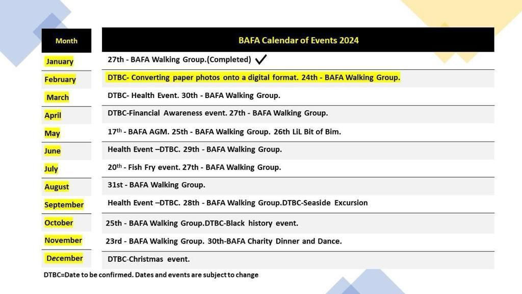Hi All, It’s time for your monthly exercise with BAFA.
